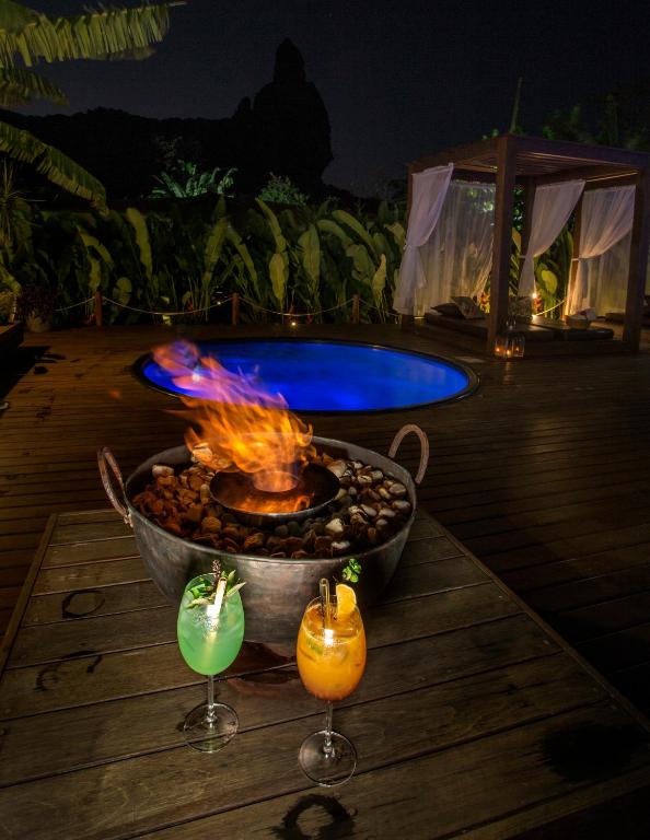 Em nosso icônico retiro com paredes rosa, aconchegue-se em uma das mais belas maravilhas da natureza e reacenda seu espírito aventureiro. Admire o deslumbrante pôr do sol saboreando uma caipirinha antes de um autêntico churrasco brasileiro, ou relaxe na piscina externa aquecida, protegida pela exuberante floresta tropical.