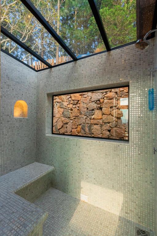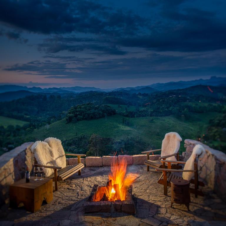 Como uma coroa, repousa sobre o topo da montanha coberta por sua Reserva Florestal de Mata Atlântica. Sobre ele, o céu infinito e em plenitude visual. Irrestrito em seus 360 graus, funciona como um mirante acolhedor e gentil. À frente de suas quatro faces, reinam a incrível Pedra Azul, o encantador Forno Grande, o gigante Pico da Bandeira, o verdejante três pontões e a extraordinária Mata Atlântica.