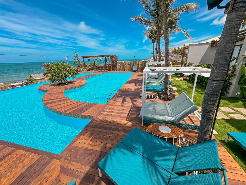Um refúgio com piscina, lounge e bar em frente ao mar